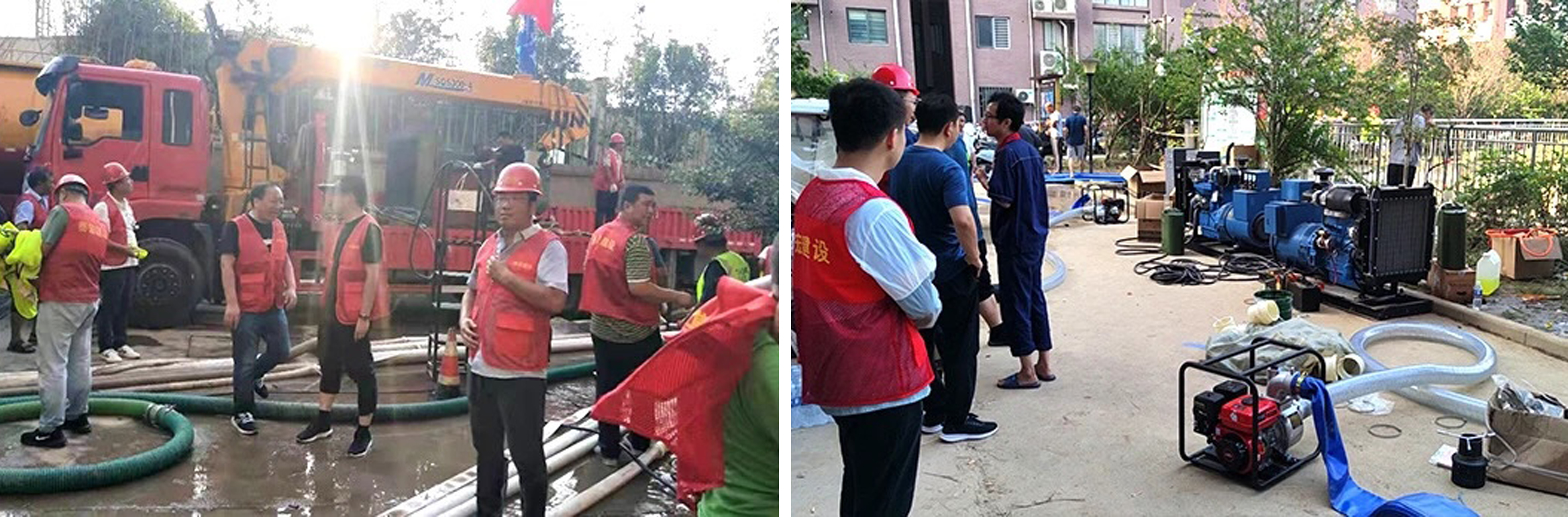 按照市住建局部署,公司统一安排,泰宏建设第一公司各项目立即奔赴金水区丰产路办事处东峰听橹小区,天裕小区,郑州商务宾馆,红旗路80号院、94号院,尚城宾馆,爱泊酒店等地方参与灾后救援排水工作。公司总经理宋广明亲自上阵安排、指挥,常务副总赵建国,第一公司王道军,王刚,秦朝,董政,杨强、倪铁虎等领导按照分工,立即组织现场排水。各项目携带发电机组,抽水泵等设备积极投身一线,在最快的时间完成现场调配调试,开展排水工作。