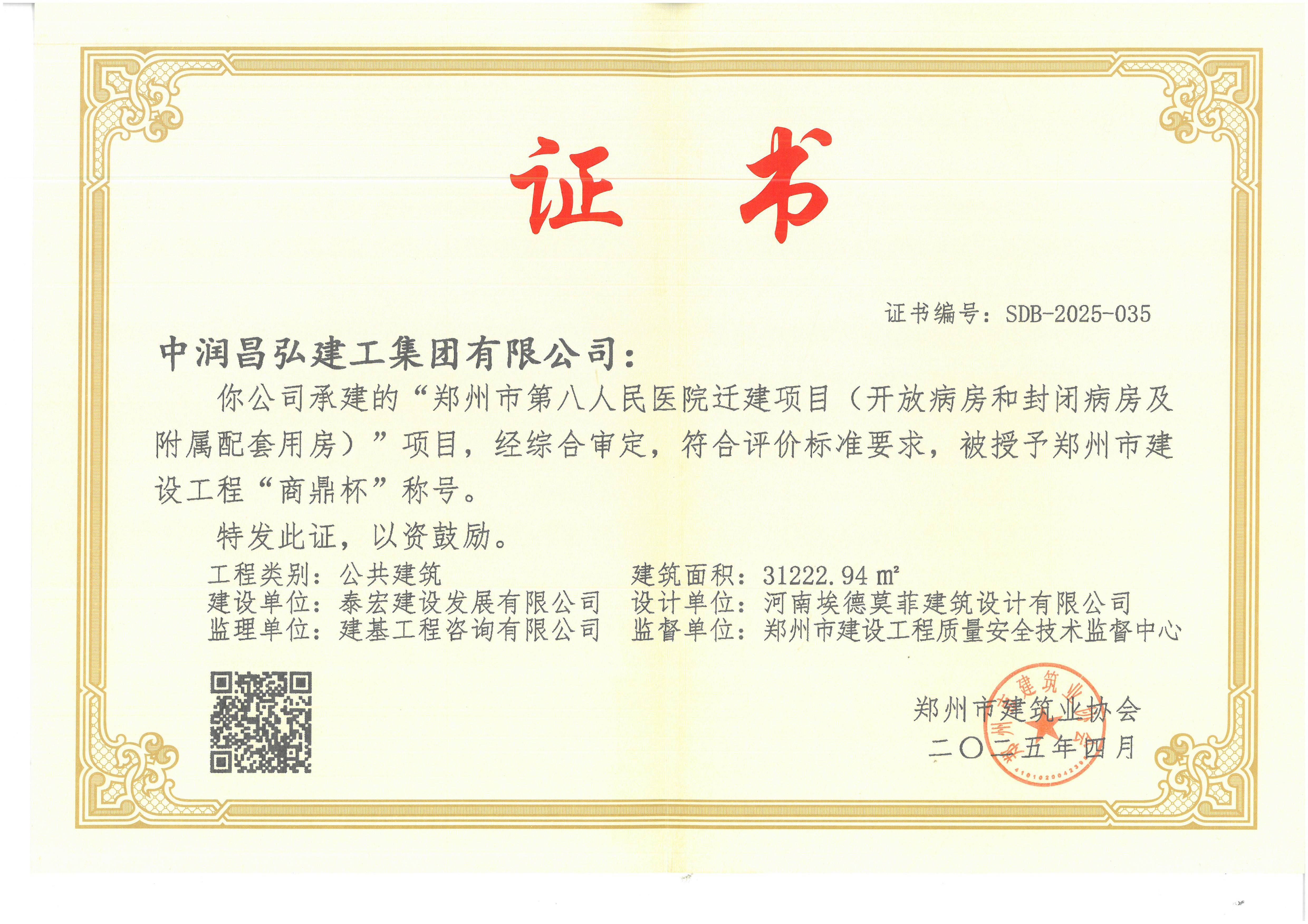 近日,星空体育-星空(中国)承建的省直青年人才公寓博学苑项目、金岱智慧产业园二期项目及代建的郑州市第八人民医院迁建项目被郑州市建筑业协会授予郑州市建设工程“商鼎杯”称号。